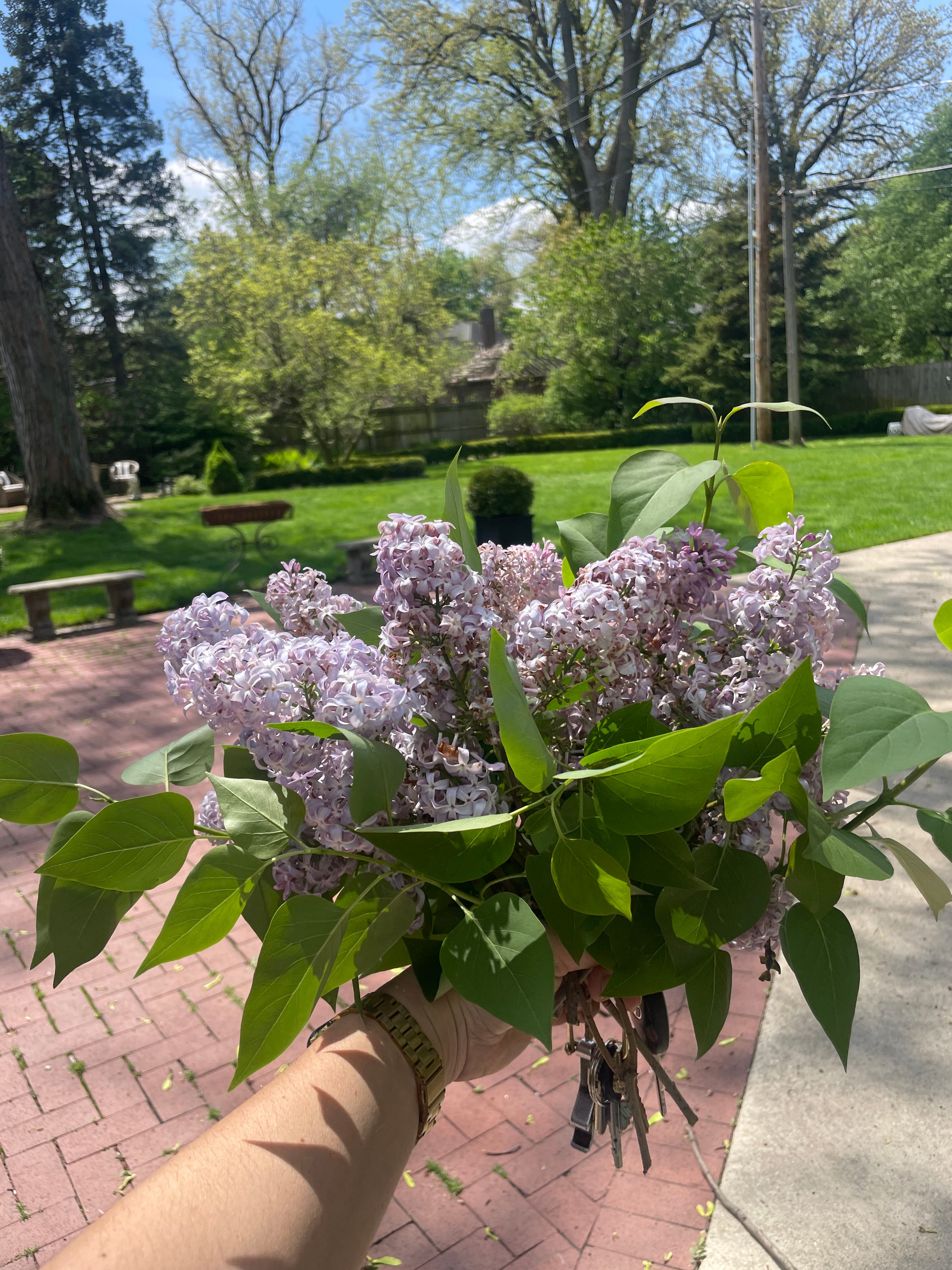 I always love the Spring because it feels like a collective awakening of joy after the constant grayness of winter. The sun comes out and we’re all reminded that the world is a beautiful place and we all feel like hanging out again! The lilacs have already come and are tapering off here in Detroit. There’s an empty lot across the street from my house that has a row of lilac bushes that I love to pick from and luxuriate in the magical scent as much as possible. Being in tune with the seasons of when things bloom in nature really helps ground me in the present moment. We’ll enjoy two weeks of lilacs in May, and then they will be gone. But during the time they’re here, I’ll have them in a vase in every room and on the seat next to me in my car and immerse myself in the best smell in the world in the most delicate lovely purple.
